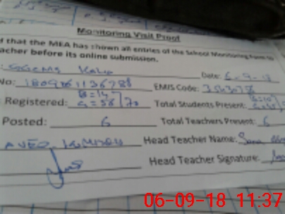 | Attendance Register | Head Teacher | MEA with School | Visit Proof |