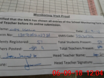 | Attendance Register | Head Teacher | MEA with School | Visit Proof |