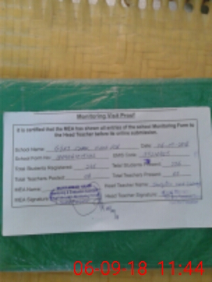 | Attendance Register | Head Teacher | MEA with School | Visit Proof |