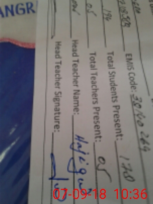 | Attendance Register | Head Teacher | MEA with School | Visit Proof |
