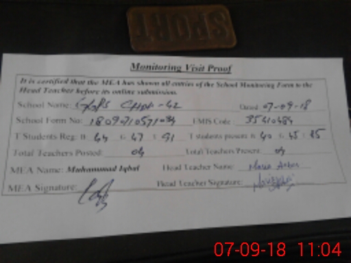 | EMIS Code: 35410484 | Name of School: GGPS CHAK 42 | |||