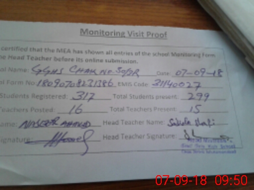 | EMIS Code: 31140027 | Name of School: GGHS CHAK NO.30/3-R | |||