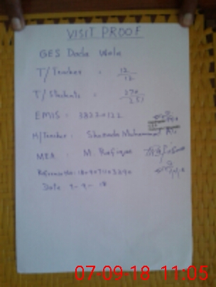 | EMIS Code: 38220122 | Name of School: GES DADOO WALA | |||
