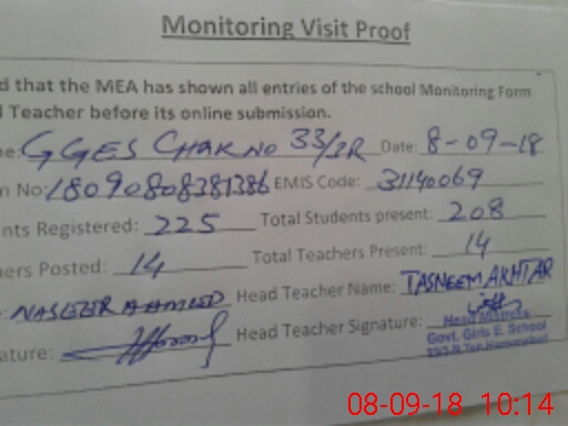 | EMIS Code: 31140069 | Name of School: GGHS CHAK NO. 33/3-R | |||