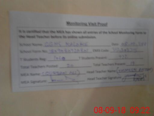 | EMIS Code: 35430235 | Name of School: GGHS KALOKE | |||