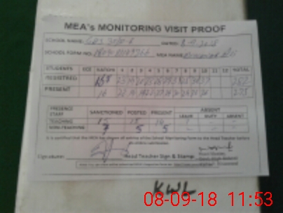 | Attendance Register | Head Teacher | MEA with School | Visit Proof |