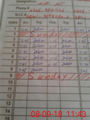 | CNIC | Full Name | Designation | R/C | Absence During Last Calender Month |