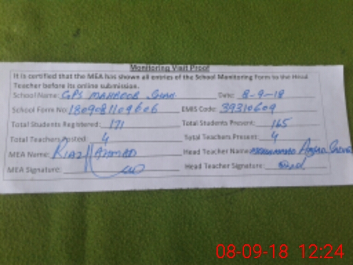 | Attendance Register | Head Teacher | MEA with School | Visit Proof |