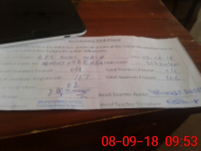 | Attendance Register | Head Teacher | MEA with School | Visit Proof |