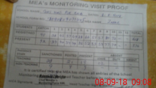 | Attendance Register | Head Teacher | MEA with School | Visit Proof |