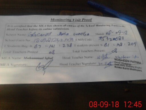 | Certified that this School was Inspected by the Undersigned MEA/DMO Today and the Information Stated Above is as Per Record. | |||||
