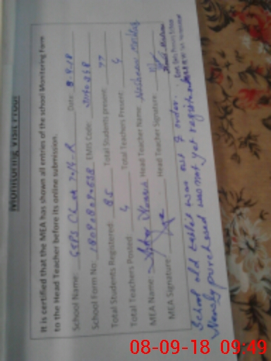 | Remarks (Use Separate Page if Required): Old tablet was out of order New tablet was not yet registered Head teacher was told to get it registered immediately | |||||