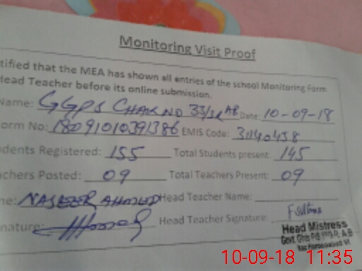 | Certified that this School was Inspected by the Undersigned MEA/DMO Today and the Information Stated Above is as Per Record. | |||||