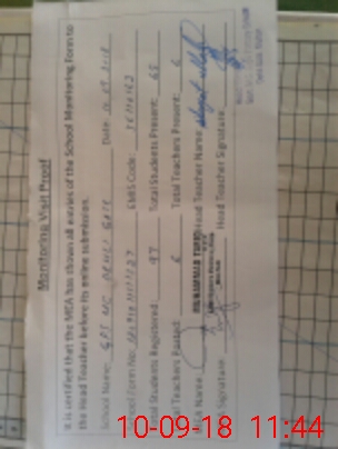 | Attendance Register | Head Teacher | MEA with School | Visit Proof |