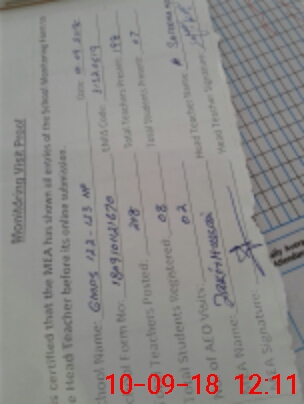 | Certified that this School was Inspected by the Undersigned MEA/DMO Today and the Information Stated Above is as Per Record. | |||||