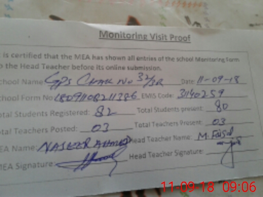 | EMIS Code: 31140259 | Name of School: GPS CHAK NO.32/3-R | |||