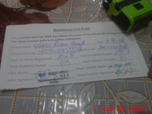 | EMIS Code: 36110038 | Name of School: GGHSS PIRAN GHAIB MULTAN | |||