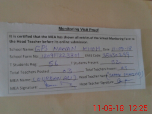 | Certified that this School was Inspected by the Undersigned MEA/DMO Today and the Information Stated Above is as Per Record. | |||||
