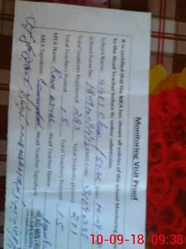 | Certified that this School was Inspected by the Undersigned MEA/DMO Today and the Information Stated Above is as Per Record. | |||||