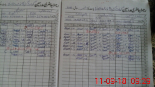 | CNIC | Full Name | Designation | R/C | Absence During Last Calender Month |
