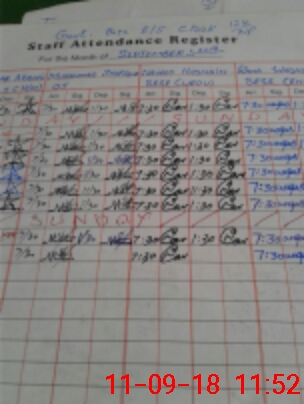 | CNIC | Full Name | Designation | R/C | Absence During Last Calender Month |