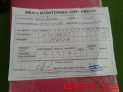 | Attendance Register | Head Teacher | MEA with School | Visit Proof |
