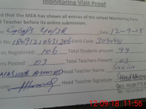 | Certified that this School was Inspected by the Undersigned MEA/DMO Today and the Information Stated Above is as Per Record. | |||||