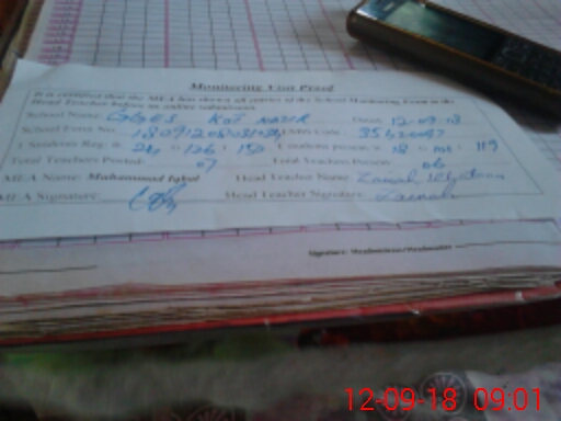 | Name: MA**** AN**** Designation: (School Headmaster's/Headmistress's) SST (Math) Phone/Cell Number: 03**** |