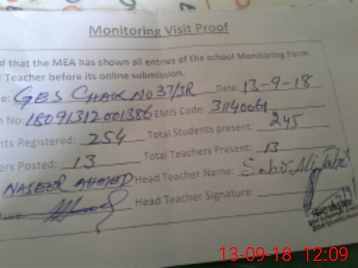 | EMIS Code: 31140061 | Name of School: GES CHAK NO. 37/3-R | |||