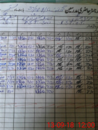| CNIC | Full Name | Designation | R/C | Absence During Last Calender Month |