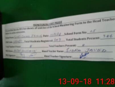 | Attendance Register | Head Teacher | MEA with School | Visit Proof |