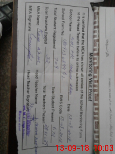 | Certified that this School was Inspected by the Undersigned MEA/DMO Today and the Information Stated Above is as Per Record. | |||||