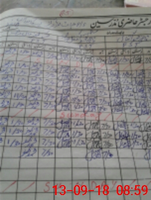 | CNIC | Full Name | Designation | R/C | Absence During Last Calender Month |