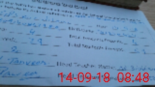 | Monitoring Date: 14-09-2018 | Start Time: 14-09-2018 08:28 AM | End Time: 14-09-2018 08:50 AM | Name of MEA: Kh**** Ta**** | |