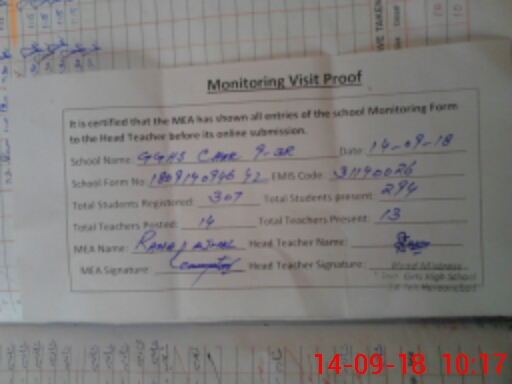| EMIS Code: 31140026 | Name of School: GGHS CHAK NO 9/3-R | |||
