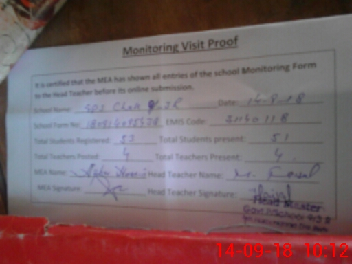 | EMIS Code: 31140118 | Name of School: GPS CHAK NO 9/3-R | |||