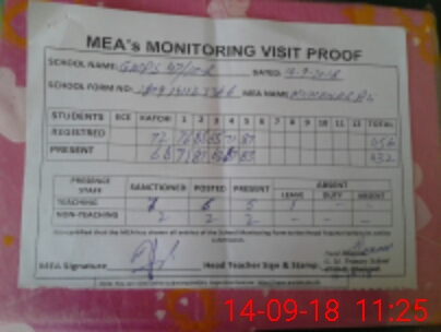| Attendance Register | Head Teacher | MEA with School | Visit Proof |