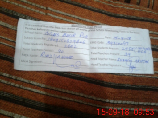 | EMIS Code: 39310047 | Name of School: GGHS MAIN DARS ROAD BASIR PUR | |||