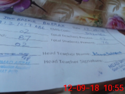 | Attendance Register | Head Teacher | MEA with School | Visit Proof |