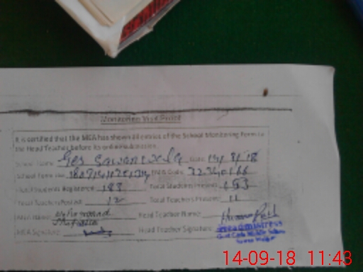 | Attendance Register | Head Teacher | MEA with School | Visit Proof |