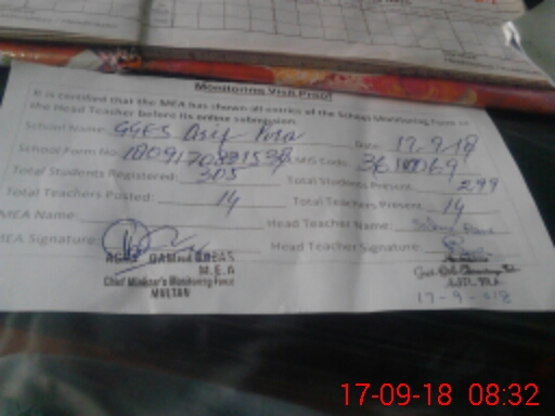 | EMIS Code: 36110069 | Name of School: GGHS ARIF PURA MULTAN | |||