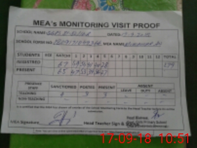 | Attendance Register | Head Teacher | MEA with School | Visit Proof |
