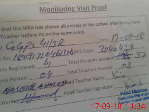 | Attendance Register | Head Teacher | MEA with School | Visit Proof |