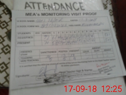 | Attendance Register | Head Teacher | MEA with School | Visit Proof |