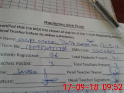 | Attendance Register | Head Teacher | MEA with School | Visit Proof |