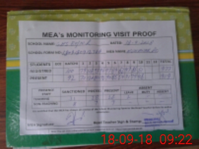 | Attendance Register | Head Teacher | MEA with School | Visit Proof |