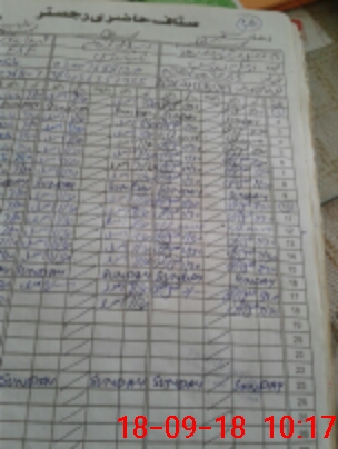 | CNIC | Full Name | Designation | R/C | Absence During Last Calender Month |