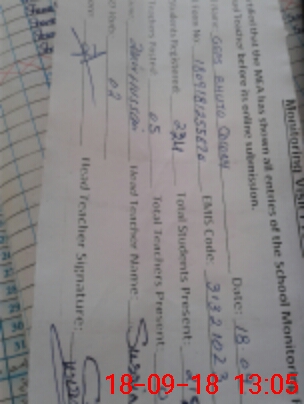 | Attendance Register | Head Teacher | MEA with School | Visit Proof |