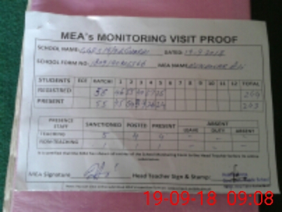 | Attendance Register | Head Teacher | MEA with School | Visit Proof |