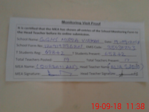 | EMIS Code: 35430243 | Name of School: GGHS MIRZA VIRKAN | |||